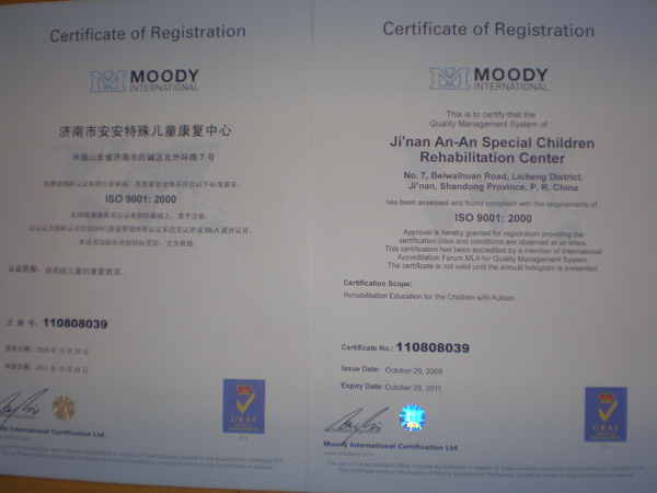 其中尤以济南安安规模最大,在我国自闭症行业中的地位举足轻重,且已经成为国内自闭症行业的领头羊。济南安安是全国第一家通过英国摩迪公司ISO9001:2000国际质量管理体系认证的机构;是中残联“七彩梦”抢救性康复救助任务指定康复救助机构;是中残联精协“自强自律”创建活动山东省唯一一家“社会服务达标”机构;是民政部民办非企业单位机构建设评比“AAAA”级;被山东省人民政府授予“优秀残疾人之家”荣誉称号;是山东省残联指定“贫困孤独症儿童康复训练基地”,张海迪主席为我们进行揭牌仪式。2012年,由省残联主办,济南安安协办的“全国孤独症机构负责人联席会议”,在济南圆满落幕,本次会议得到了中残联和山东省人民政府的高度重视,张海迪主席和夏耕副省长参加会议并讲话。